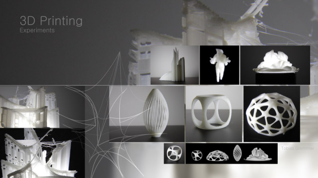 Some experiments with the low-budget 3D printer I bought. I created some 3D objects using generative functions and tested this different shapes/sizes.