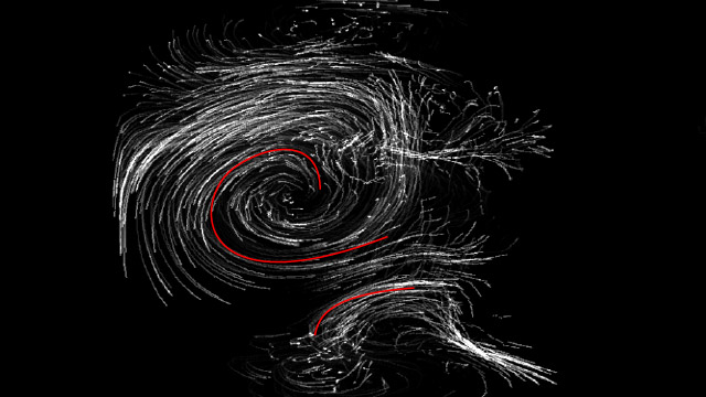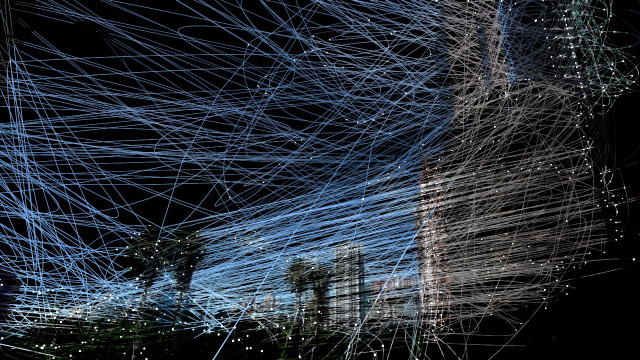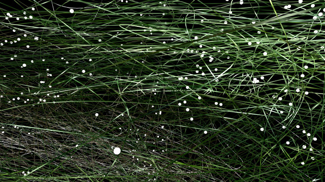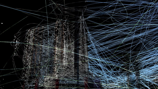 While walking around in my neighbourhood I did some shots of the Victoria Park and the buildings close by. Then, extracted the camera movement and some rough point clouds and used it to transfer the solid appearance of the scenery into thin textured strings. The image analysis worked fine, even with a shaky camera.